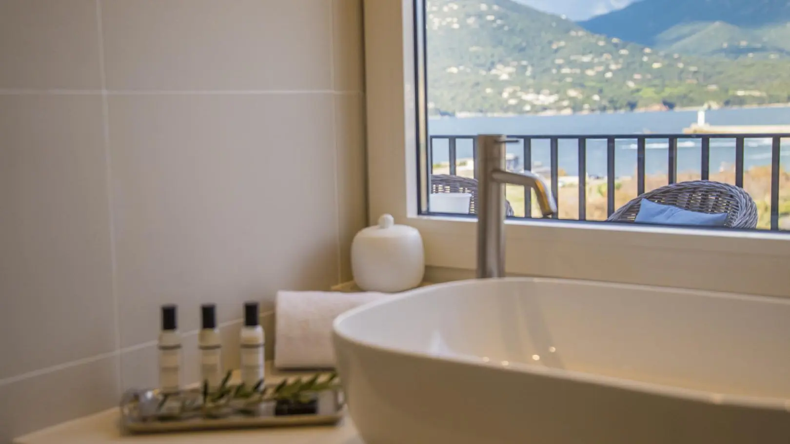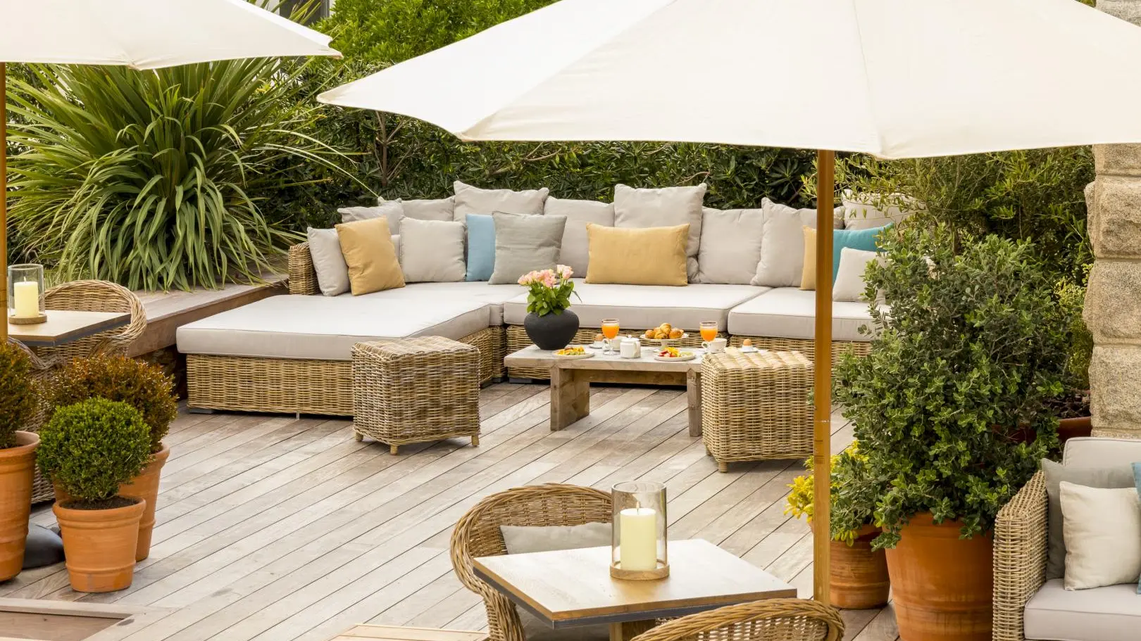 - Grande terrasse face à la mer avec salons de détente