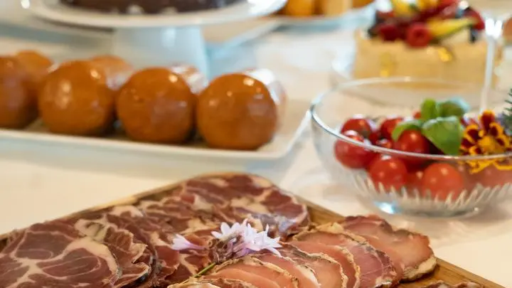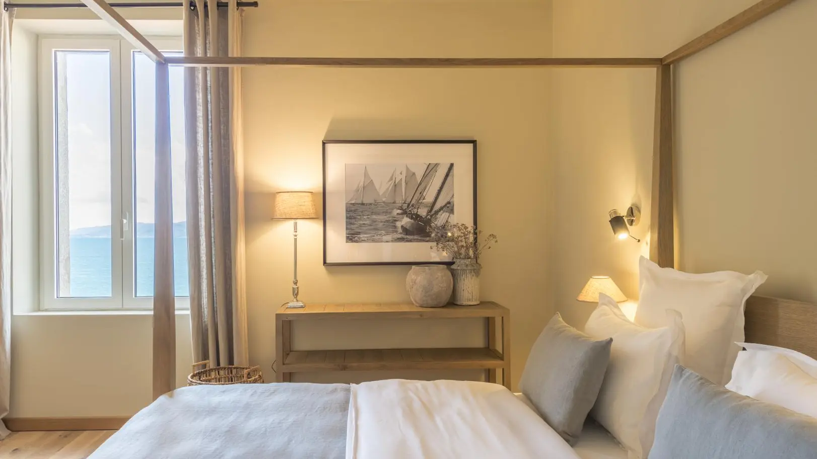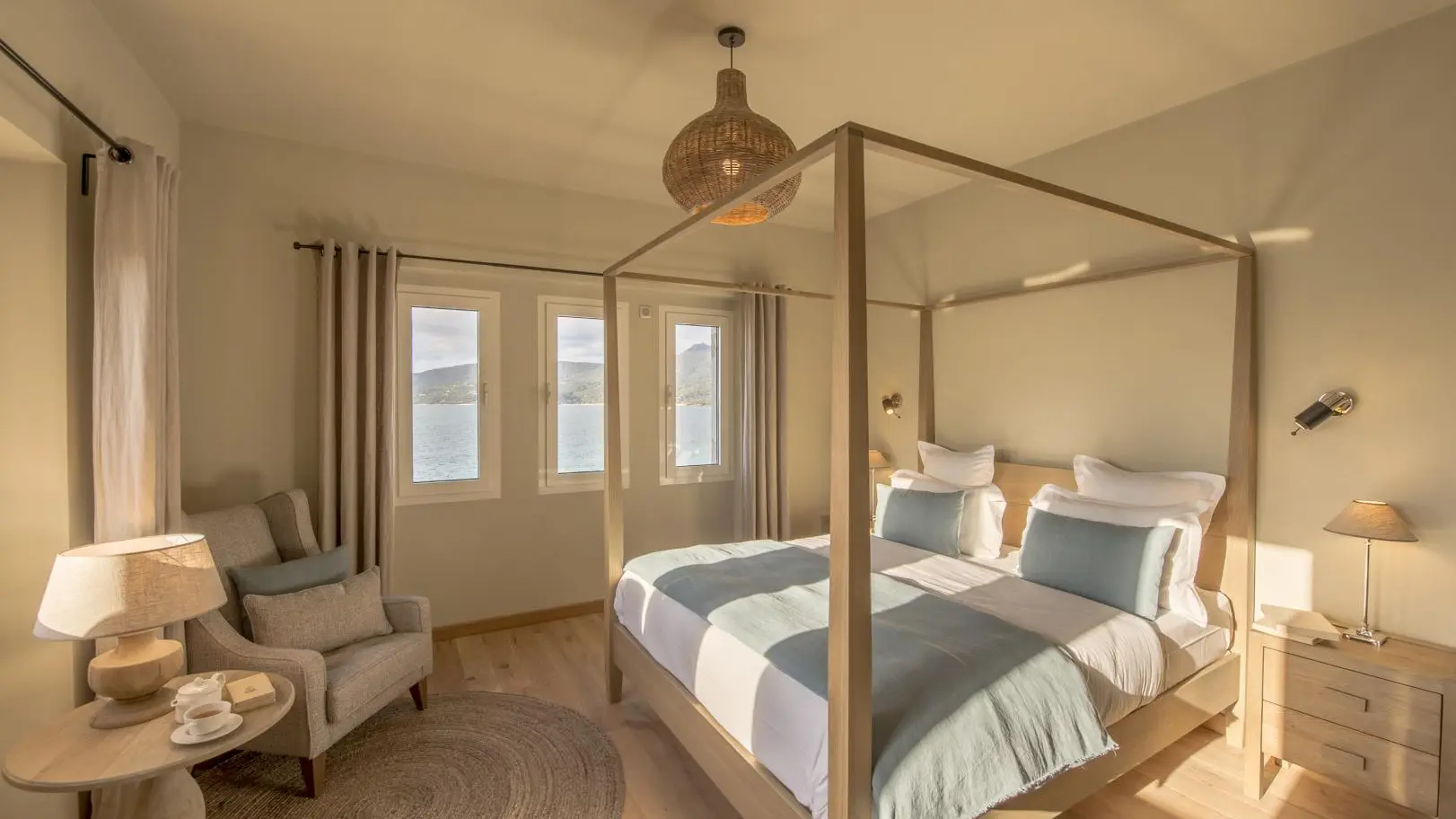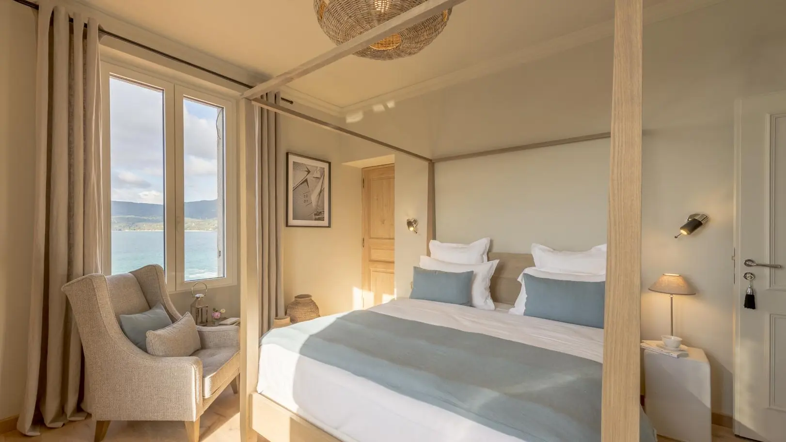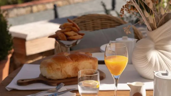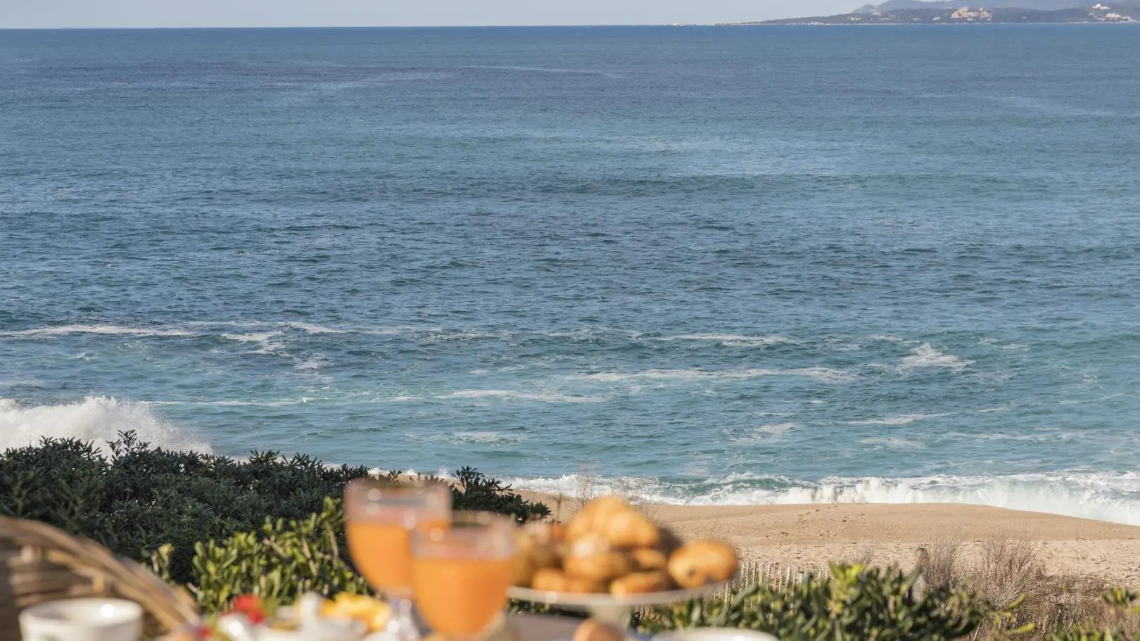 Selon la saison, les petits déjeuners sont servis sous forme de buffet soit dans la salle à manger ou sur la terrasse extérieure face à la mer.